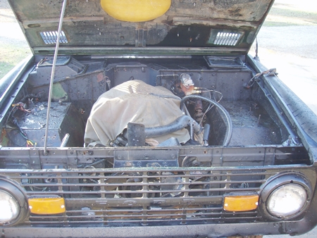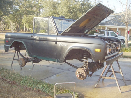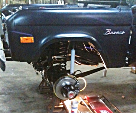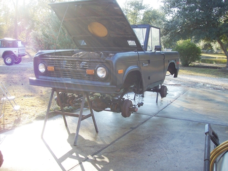 his bronco in for some goodies too, new floor pans, undercoating, engine